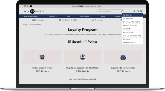 - Product reviews will be actively managed, product reviews that clearly abuse the loyalty scheme will not be granted. All product reviews must be approved by SkinMatrix before points are earned.